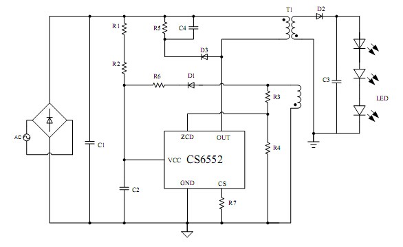 CS6552是一款离线式小功率AC/DC开关电源的高精度原边反馈LED恒流驱动电路,内部集成600V高压功率管,适应于85V-265VAC全范围输入反激式隔离LED恒流驱动,通过原边控制实现恒流,无需光耦等次级反馈环路,即可实现高精度的LED恒流输出,降低成本。CS6552内部集成了多重保护功能来加强系统的稳定性和可靠性,包括VCC欠压保护,LED开路/短路保护,逐周期限流以及过温保护等,所有保护均具有自动启动功能。