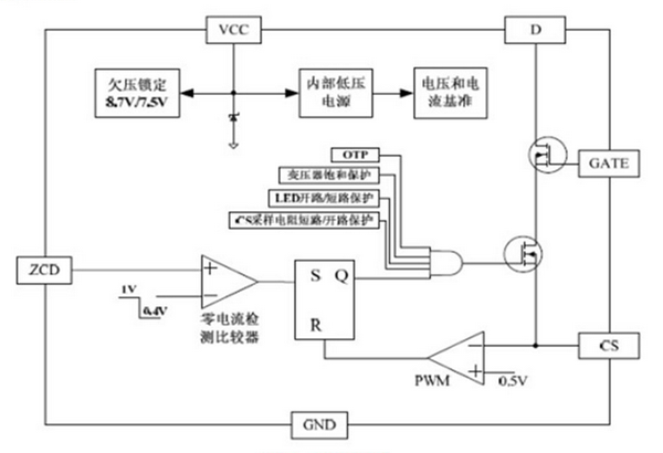 CS6581集成专利的交流输入电压欠压保护功能,在交流输入电压过低时系统自动进入打嗝模式,防止在低输入电压时输入电流过大而损环系统,同时芯片还集成了多重保护功能来加强系统的稳定性和可靠性,包括VCC欠压保护,LED开路/短路保护,逐周期限流以及过温保护等,所有保护均具有自动重启功能。