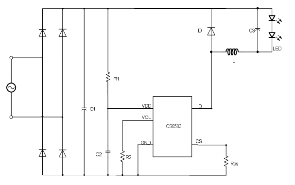 CS6583是一款单电感非隔离降压型LED恒流驱动电路,工作在电感电流临界连续模式下,适用于85Vac-265Vac全电压输入范围 ,电路的工作电流极低,只需要很少的外围元件,在较大的范围内,系统的输出电流与电感量无关,电路具有优异的线性调整率和负载调整率,降压系统成本。