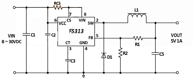 3. 输出电流超过1A,输入电压8-36V