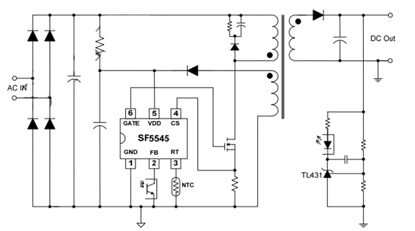 SF5545采用SOT23 - 6 , DIP- 8封装。