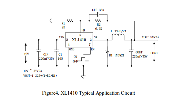 XL1410是一款高效, PWM 降压型DC-DC转换换器固定380KHz开关频率,可提供高达2A输出电流能力。XL1410具有低纹波,出色的线性调整率和负载调整率。只有少量的外围元件内置了频率补偿电路和固定频率振荡器,简化了电路设计。
