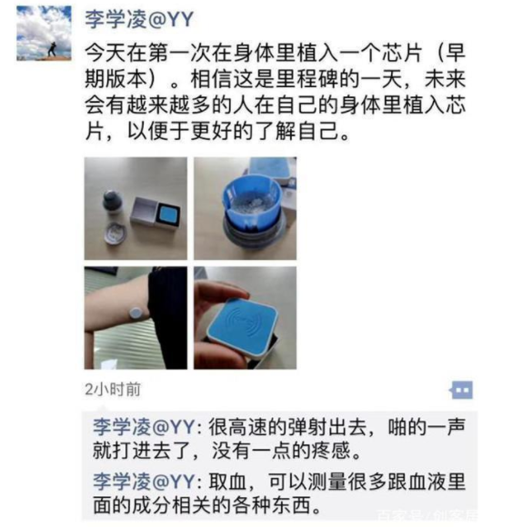 YY创始人李学凌自曝体内植入芯片,或将成为潮流?